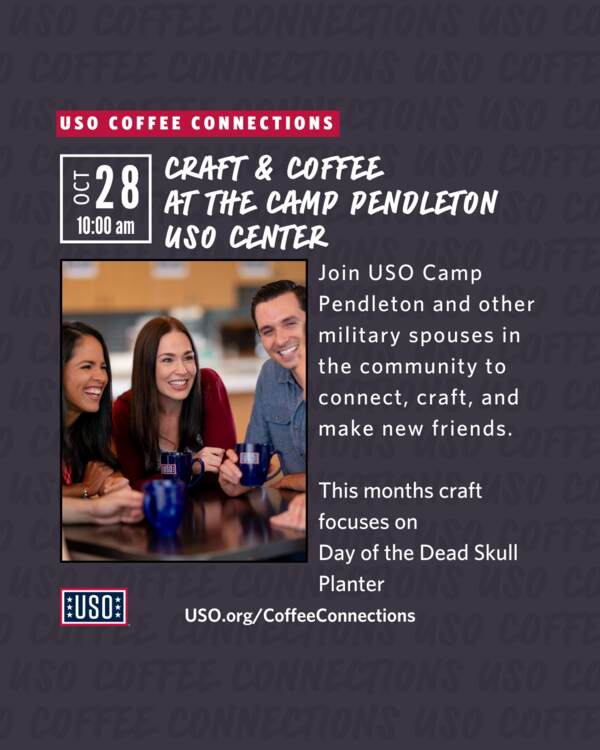 Join us at the USO for Coffee, Creativity, and Community! Each month, enjoy a unique craft project, delicious snacks, and the chance to relax and connect with fellow military spouses.