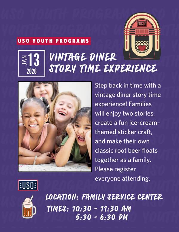 Our USO volunteers will be dressed as classic diner waiters, and children will receive a diner hat to wear and take home!