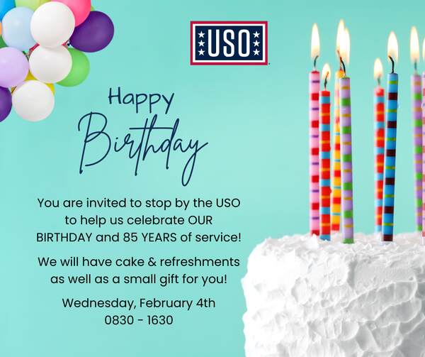 Stop by the USO to help us celebrate our 85th Birthday!