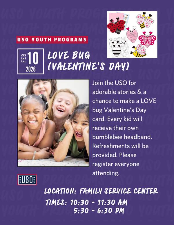 Love Bug Story Time Join us for a Valentine-themed story time filled with love and laughter! Kids will create a Valentine love-bug card and every child will receive a bumblebee headband to wear and take home. Refreshments will be provided. Please register every human or love bug attending.