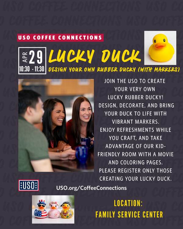 Enjoy a relaxed and creative morning at Coffee Connections as you design your own lucky rubber ducky. Enjoy refreshments, connect with others, and take home a one-of-a-kind creation. A kid-friendly room with a movie and coloring pages will be available. Please register only those doing the craft.
